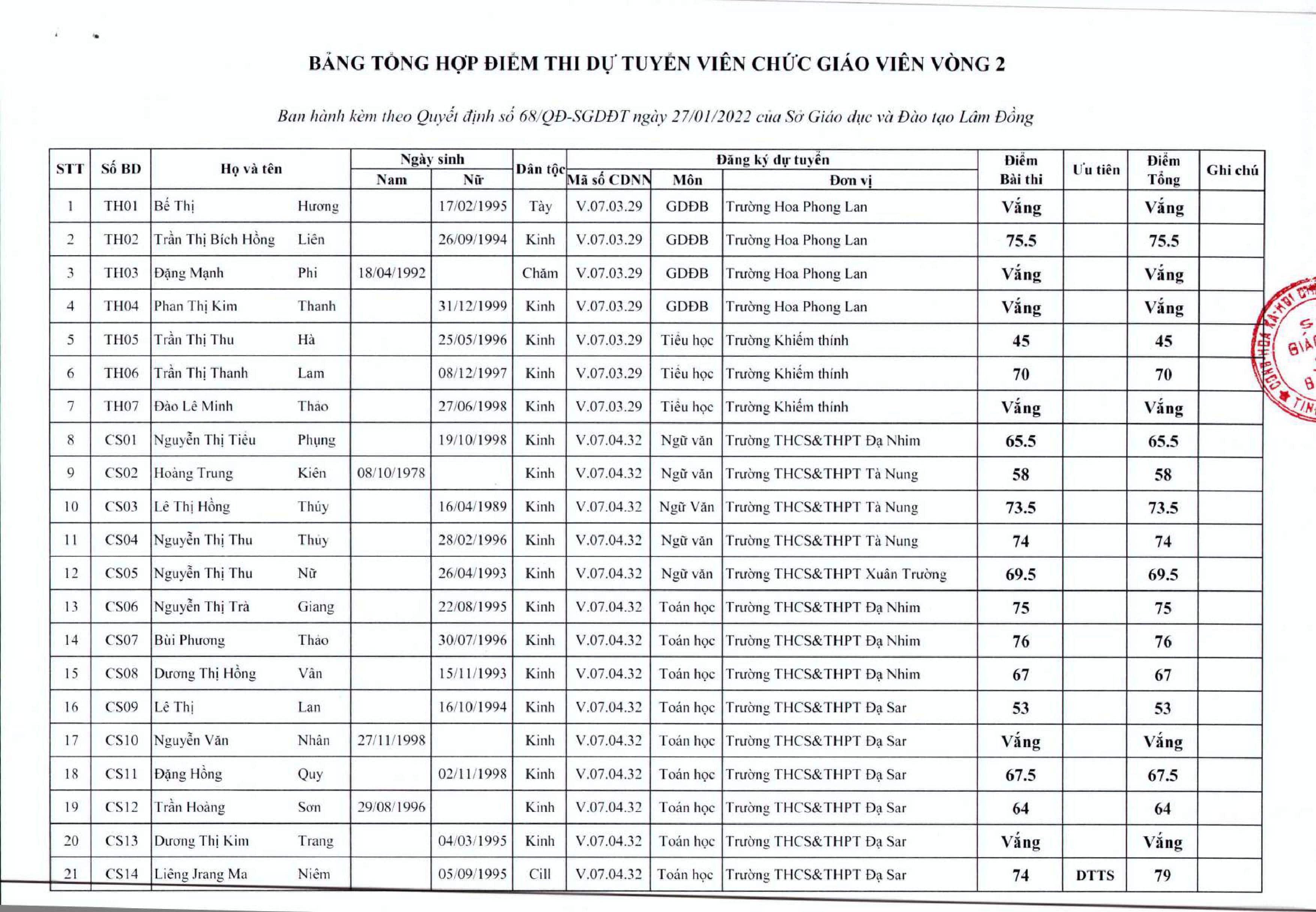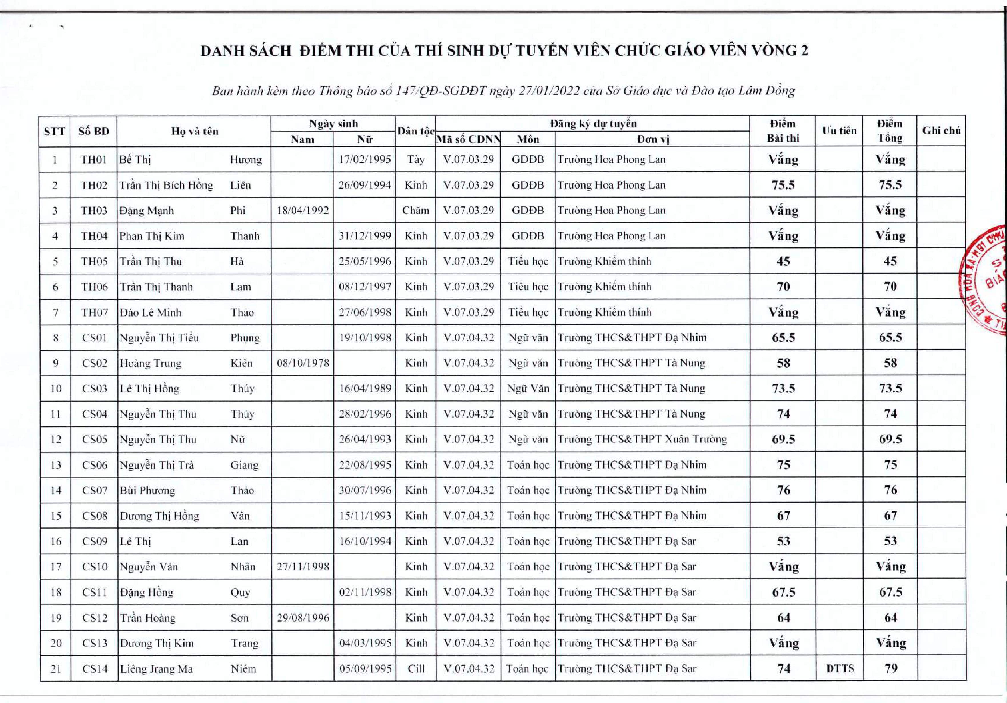 Thông báo kết quả tuyển dụng viên chức
